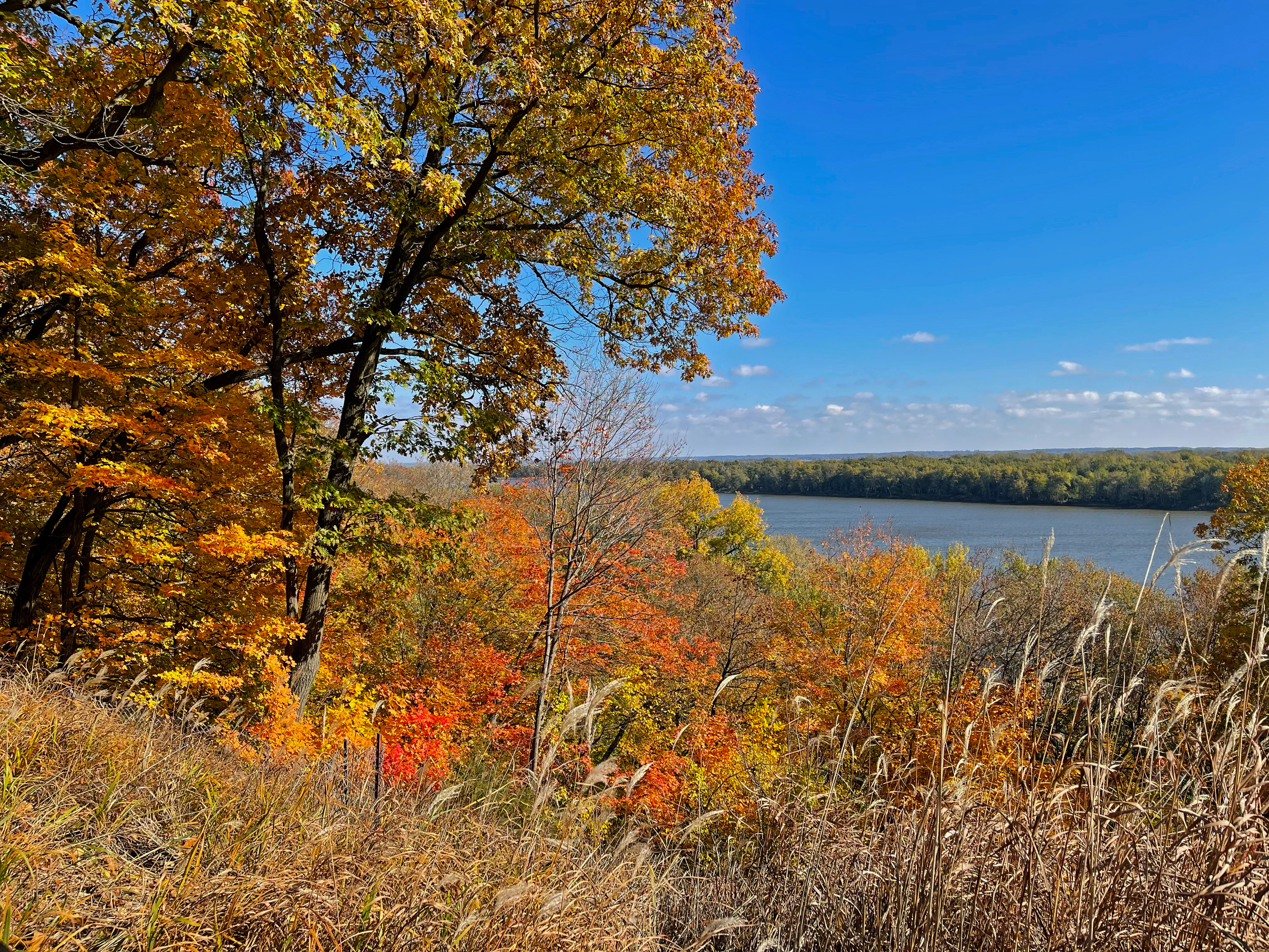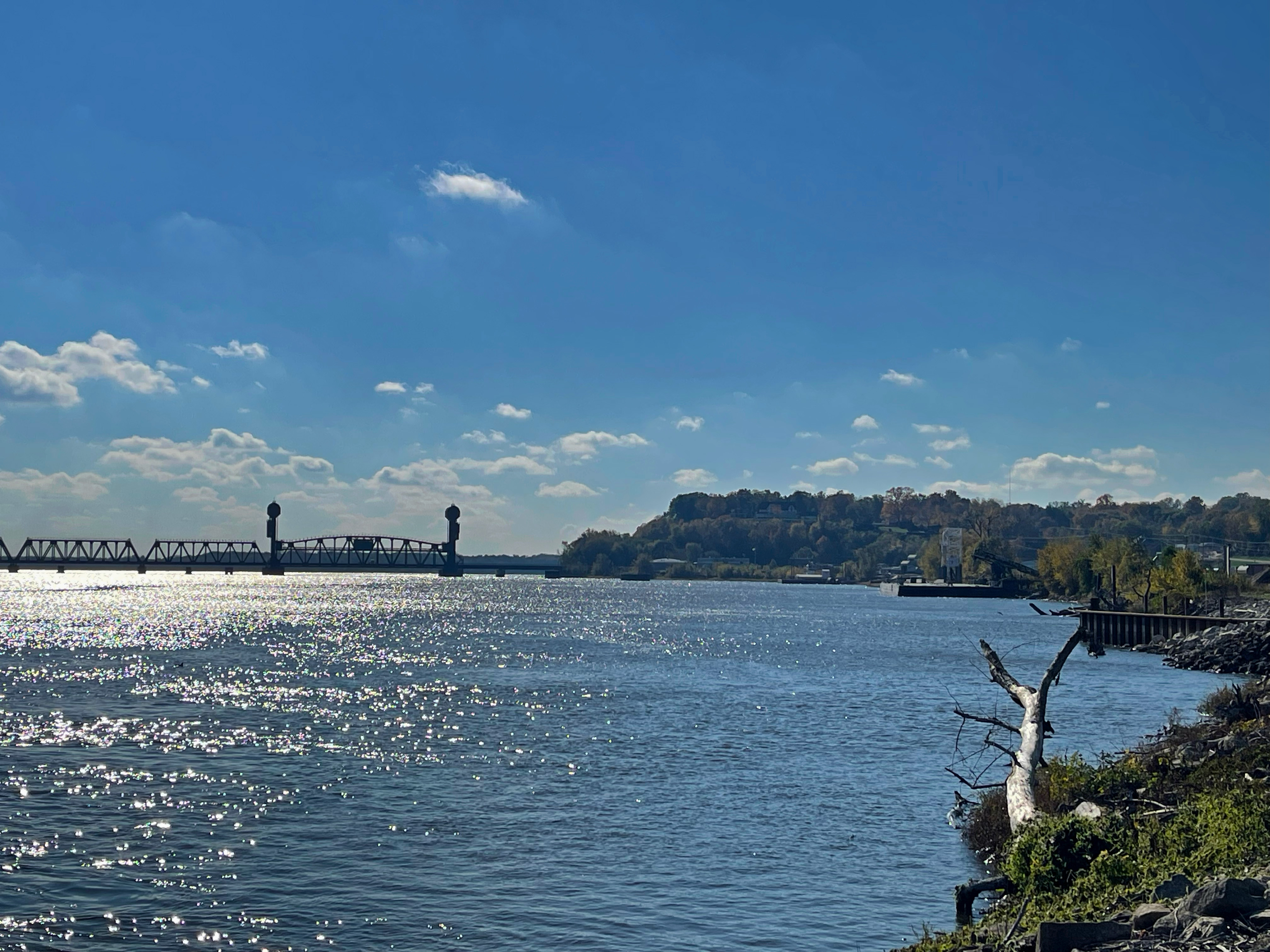 They are very full with (at the time I’m writing this,) a variety of colors, and if you look close enough you can see the beautiful properties that reside in the bluffs as well. As I took in this view, I could hear the sounds of the Mississippi’s waves lightly splashing on top of the rocks, and I could hear and see the birds soaring above the mighty river, down into the colorful trees. This brought me an overwhelming amount of serenity, which amazed me because I was downtown where there is currently a bustle of traffic and construction.