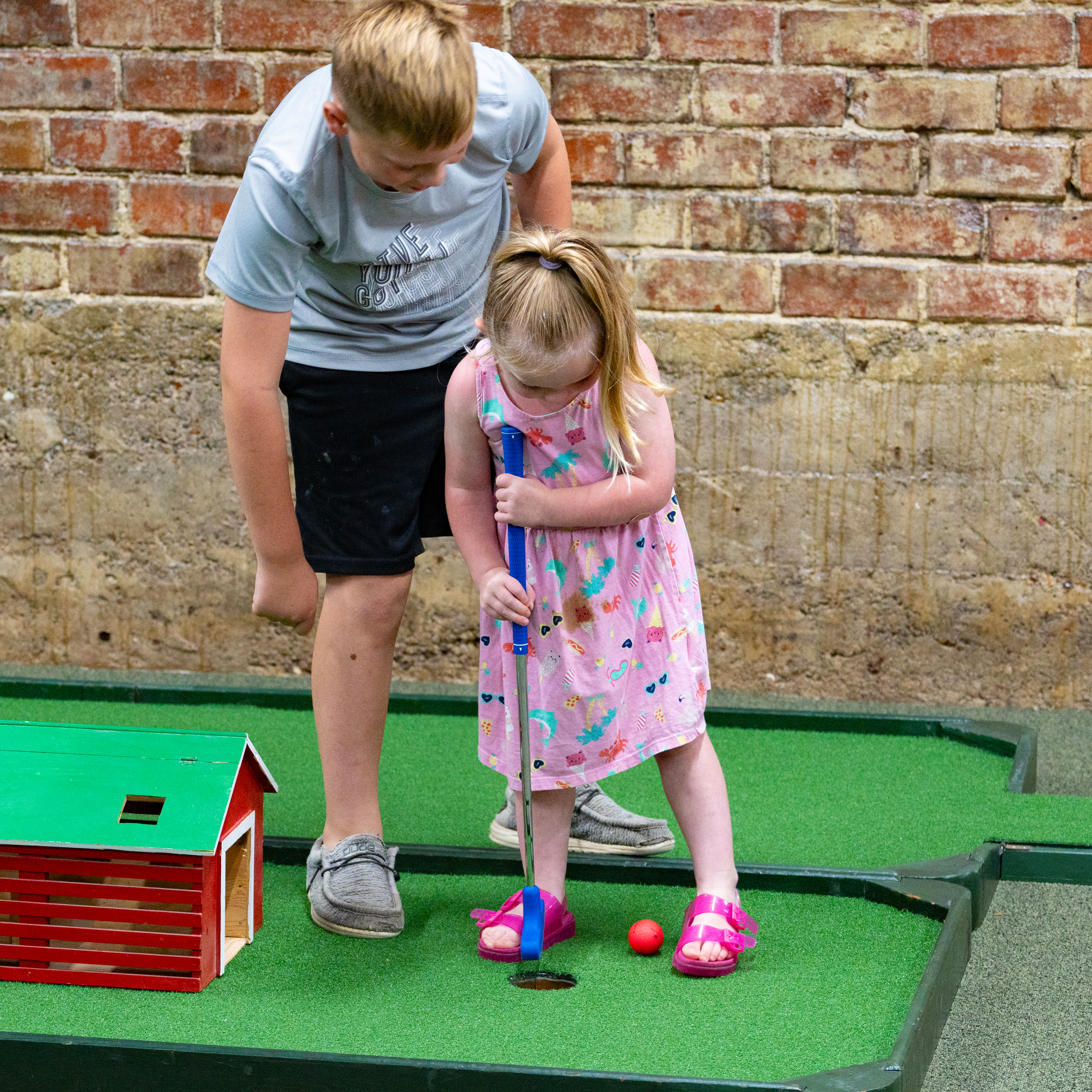 Start your adventure at Black Water Mini Golf, an indoor putt-putt experience with a retro vibe. With creative obstacles and a scenic setting, it’s a great spot for friendly family competition. Cool down after your round with a sweet treat from the Mississippi Moon Ice Cream Parlor, located in the same facility.